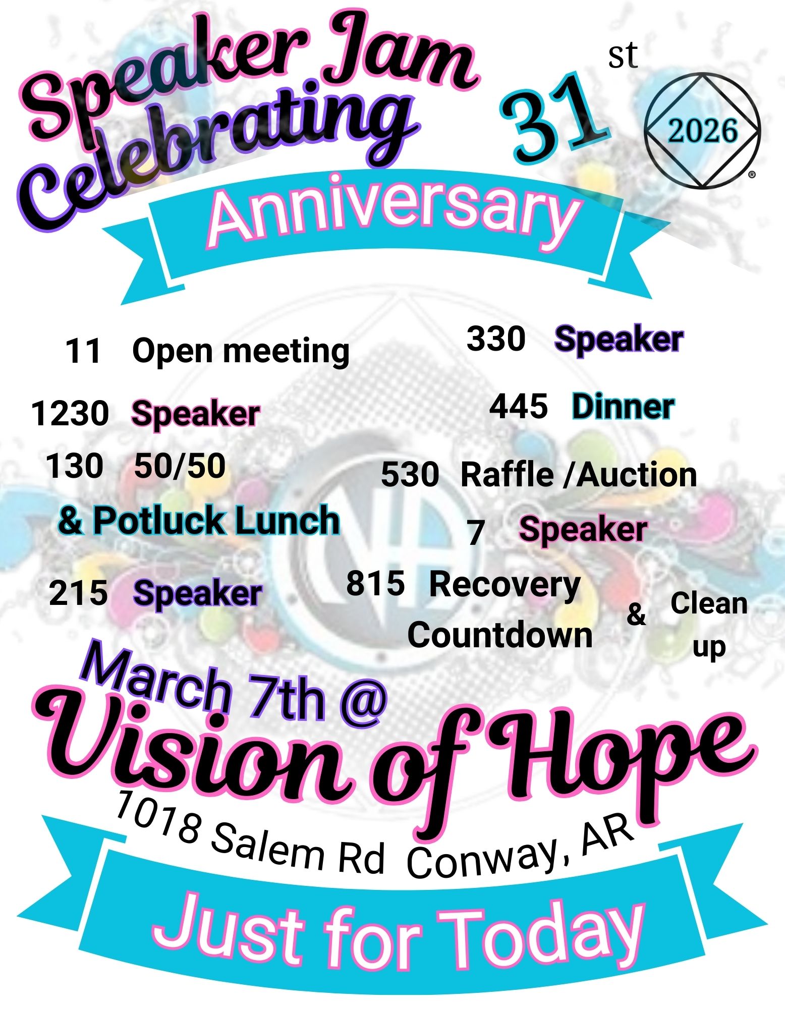 (Conway) VOH Anniversary Speaker Jam (Conway) VOH Anniversary Speaker Jam + Add to Google Calendar + iCal / Outlook export Date Mar 07 2026 Expired! Time 11:00 AM - 9:00 PM Location Vision of hope 1018 Salem rd Conway AR 72034 Organizer Vision of Hope Share this event Event Flyer