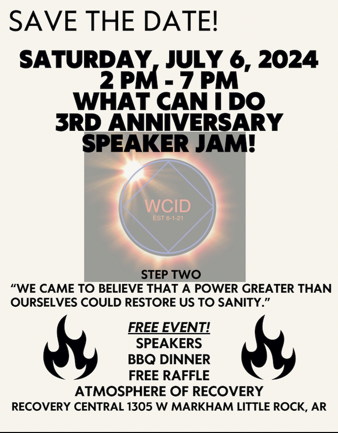 (LR) What Can I Do 3rd Anniversary Speaker Jam (LR) What Can I Do 3rd Anniversary Speaker Jam + Add to Google Calendar + iCal / Outlook export Date Jul 06 2024 Expired! Time 2:00 PM - 7:00 PM Location Recovery Central 1305 W. Markham, Little Rock, AR Organizer What Can I Do (NLR) Phone 918-933-8286 (Cassandra C) Email ccubed311@gmail.com Share this event Event Flyer