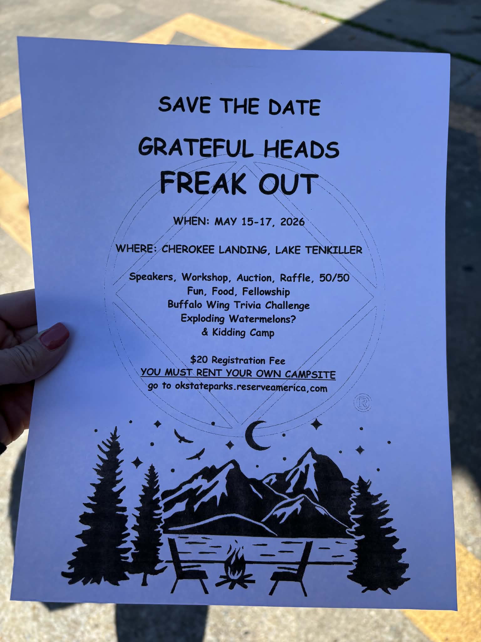 (Vian, OK) Grateful Heads Freakout Camp out Come freak out with Grateful Heads! (Vian, OK) Grateful Heads Freakout Camp out + Add to Google Calendar + iCal / Outlook export 00 days 00 hours 00 minutes 00 seconds Date May 15 - 17 2026 Time All Day Location Cherokee Landing Lake Tenkiller State Park, Vian, OK Organizer Grateful Heads Share this event