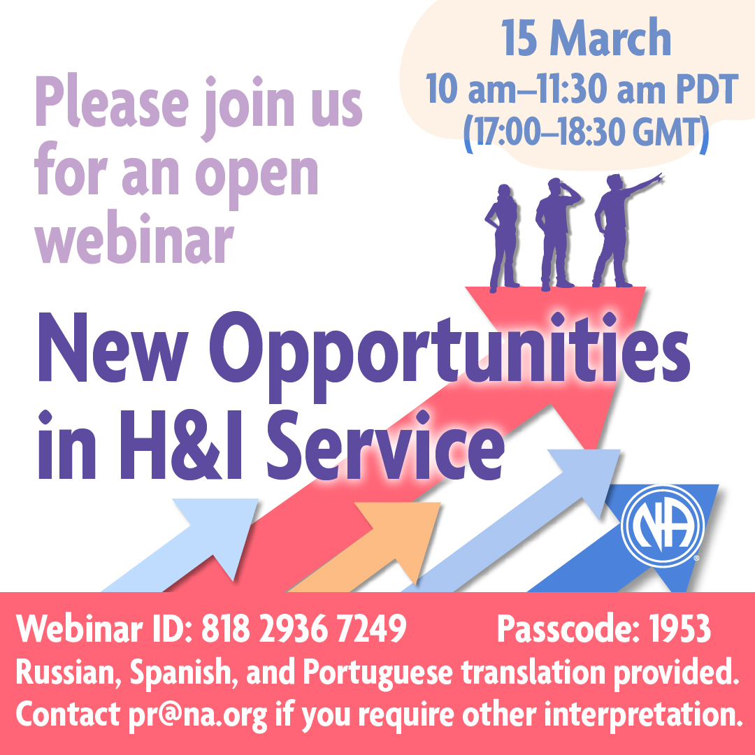(Virtual) New Opportunities in H&I Service NA Fellowship Webinar (Virtual) New Opportunities in H&I Service NA Fellowship Webinar + Add to Google Calendar + iCal / Outlook export Date Mar 15 2025 Expired! Time 12:00 PM - 1:30 PM More Info Webinar Orientation Share this event Event Flyer